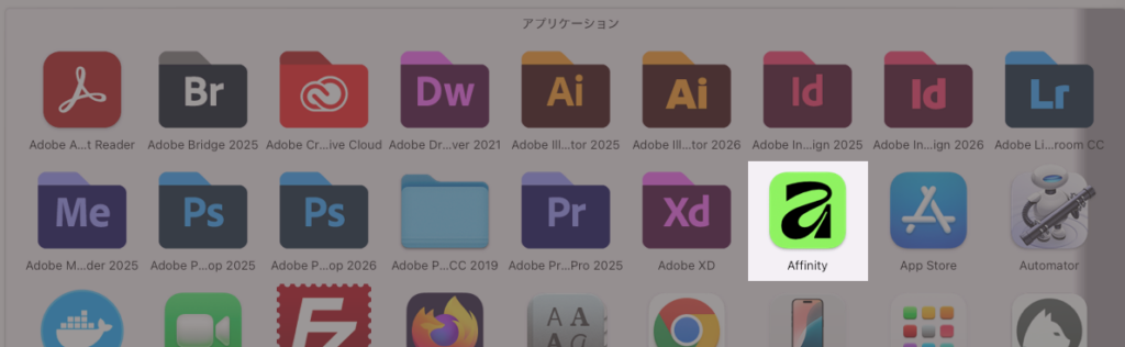 インストールが完了すると、アプリケーションにAffinityが追加されます。