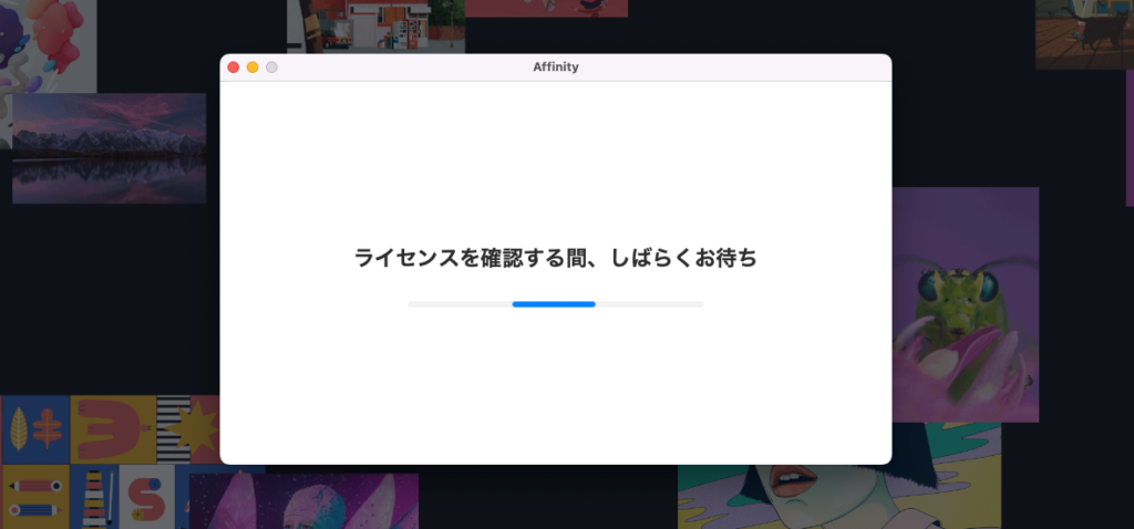 アプリケーションのAffinityアイコンをダブルクリックして起動します。
