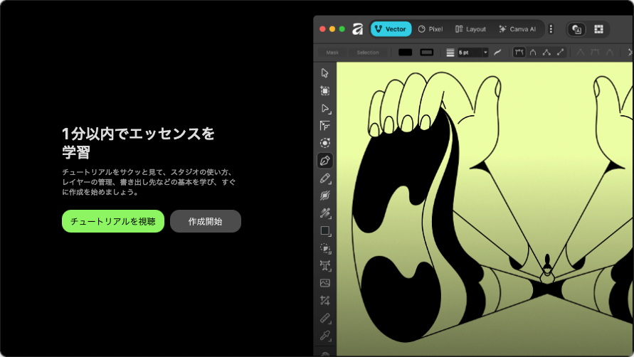 「Affinity Studio」を使用できるAffinityアプリは、公式サイトからインストールして、「Canva」のアカウントでログインするだけで簡単に使用を開始できます。