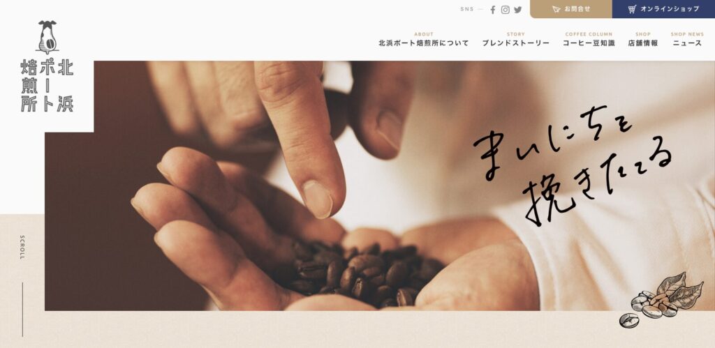 インクペンで描かれたデッサンのようなイラストが素敵なWebサイトです。珈琲ブラウンに統一されたカラーにブルーの落ち着いたアクセントがお洒落です。