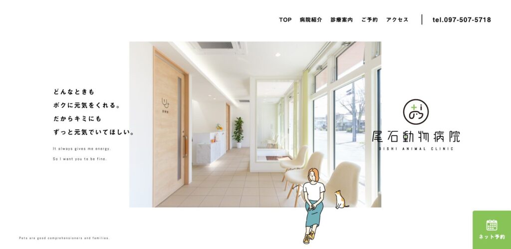動物と人物のイラストのあしらいが可愛いなWebサイトです。ロゴの爽やかな黄緑色をアクセントカラーに使用した、統一感のあるデザインが素敵です。