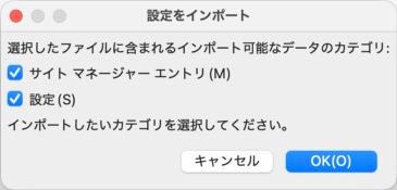 ダイアログが開くので、インポートする設定を選択して「OK」をクリックします。