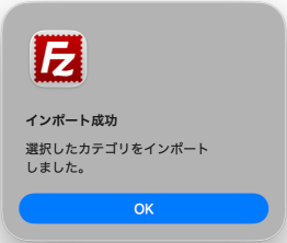 問題がなければ「インポート成功」のメッセージが表示されるので「OK」をクリックします。