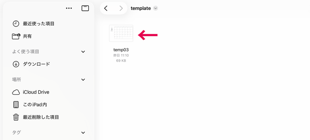 はじめに、テンプレートとして使用したいPDFファイルをiPad内に保存しておきます。