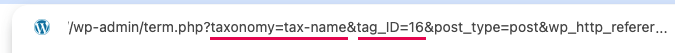 記事数を表示したいタームのIDと所属しているタクソノミーは、管理画面でタクソノミーの編集画面を開いた時にURLから確認できます。