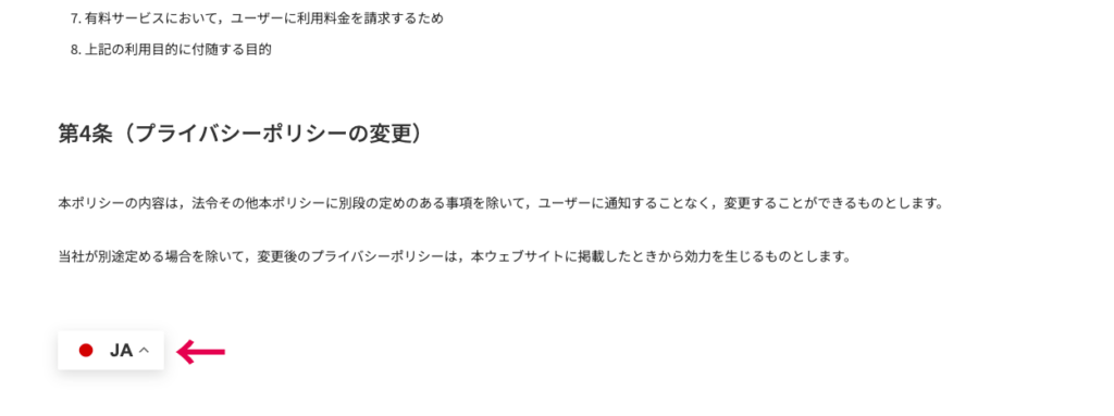 設置したウィジェットをクリックすると、管理画面で選択した言語が表示されます。